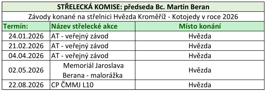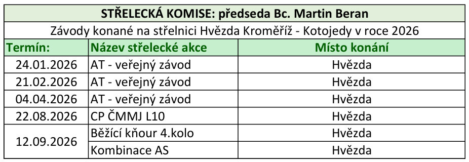 Kalendář střeleckých akcí pro rok 2026
